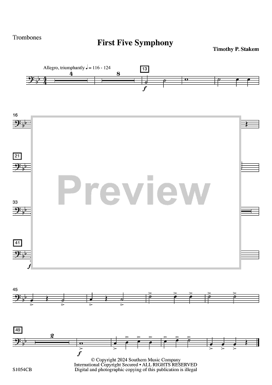 "First Five Symphony - Trombones" Sheet Music by Timothy P. Stakem