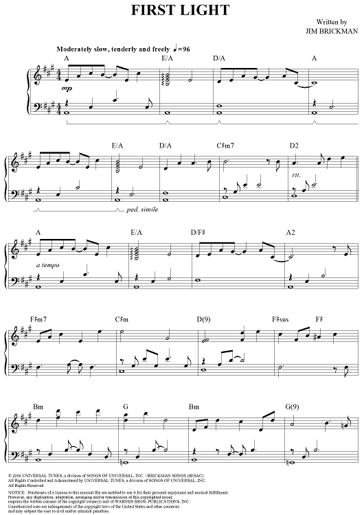 Digital Sheet Music for First Light by Jim Brickman scored for Piano/Chords; id:359773