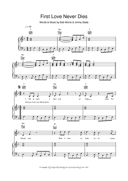 Digital Sheet Music for First Love Never Dies by Jimmy Seals, Bob Morris, Scott Walker scored for Piano/Vocal/Chords; id:379819