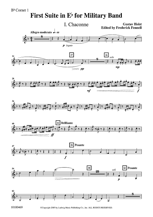 Digital Sheet Music for First Suite in E flat - Bb Cornet 1 by Gustav Holst, Frederick Fennell scored for Concert Band; id:502888