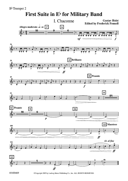 Digital Sheet Music for First Suite in E flat - Bb Trumpet 2 by Gustav Holst, Frederick Fennell scored for Concert Band; id:502893