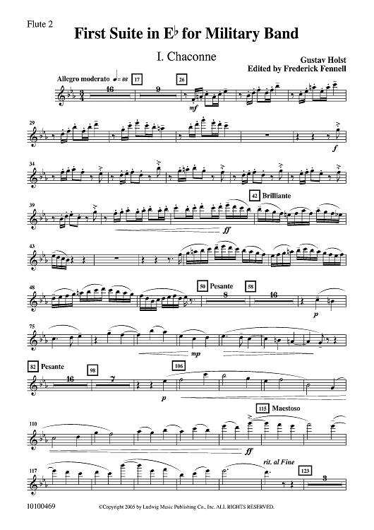 Digital Sheet Music for First Suite in E flat - Flute 2 by Gustav Holst, Frederick Fennell scored for Concert Band; id:502873