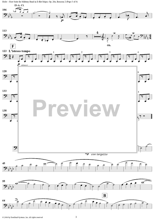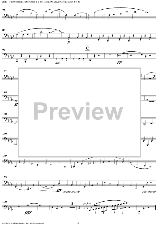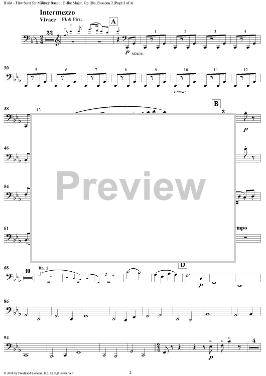 Digital Sheet Music for First Suite in E-flat, Op. 28a - Bassoon 2 by Gustav Holst scored for Concert Band; id:311098