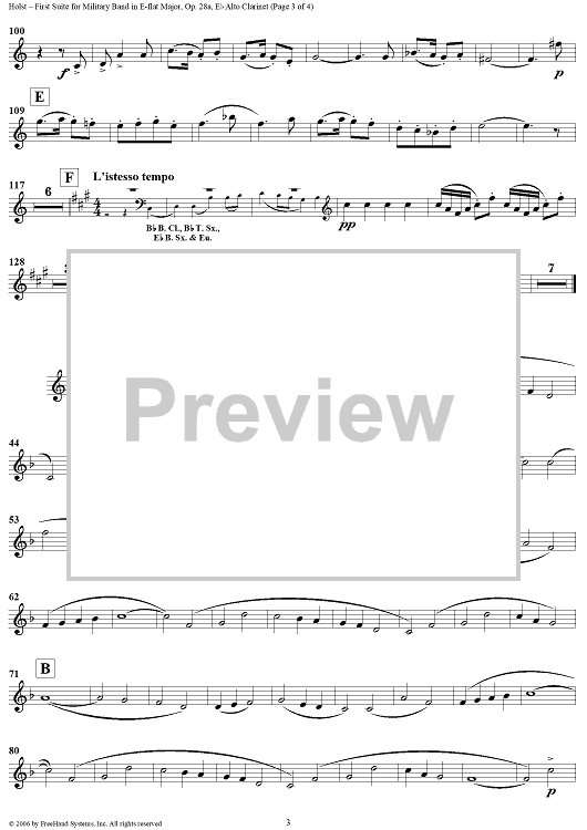 "First Suite in E-flat, Op. 28a - E-flat Alto Clarinet" Sheet Music by Gustav Holst