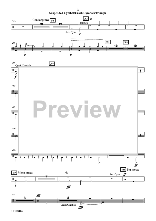 Digital Sheet Music for First Suite in E flat - Suspended, Crash Cymbal & Triangle by Gustav Holst, Frederick Fennell scored for Concert Band; id:502909