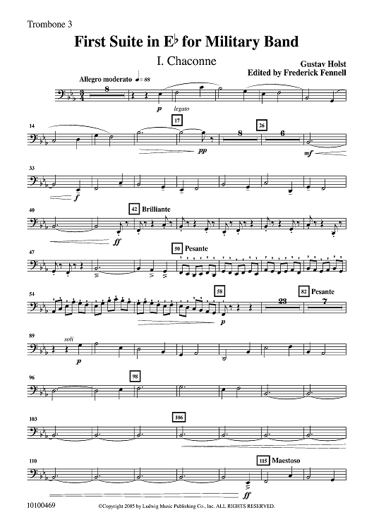 Digital Sheet Music for First Suite in E flat - Trombone 3 by Gustav Holst, Frederick Fennell scored for Concert Band; id:502900
