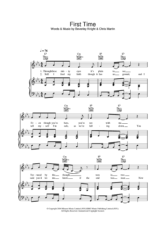 Digital Sheet Music for First Time by Beverley Knight scored for Piano/Vocal/Chords; id:379366