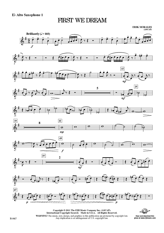 Digital Sheet Music for First We Dream - Eb Alto Sax 1 by Erik Morales scored for Concert Band; id:425560