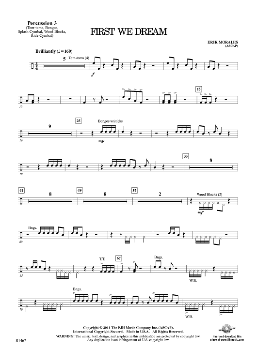 Digital Sheet Music for First We Dream - Percussion 3 by Erik Morales scored for Concert Band; id:425581