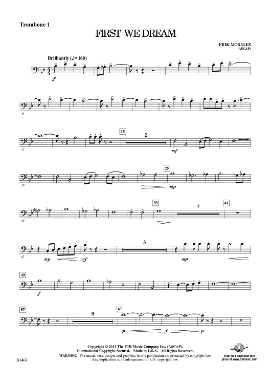 Digital Sheet Music for First We Dream - Trombone 1 by Erik Morales scored for Concert Band; id:425569