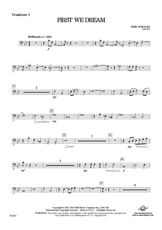 Digital Sheet Music for First We Dream - Trombone 3 by Erik Morales scored for Concert Band; id:425571