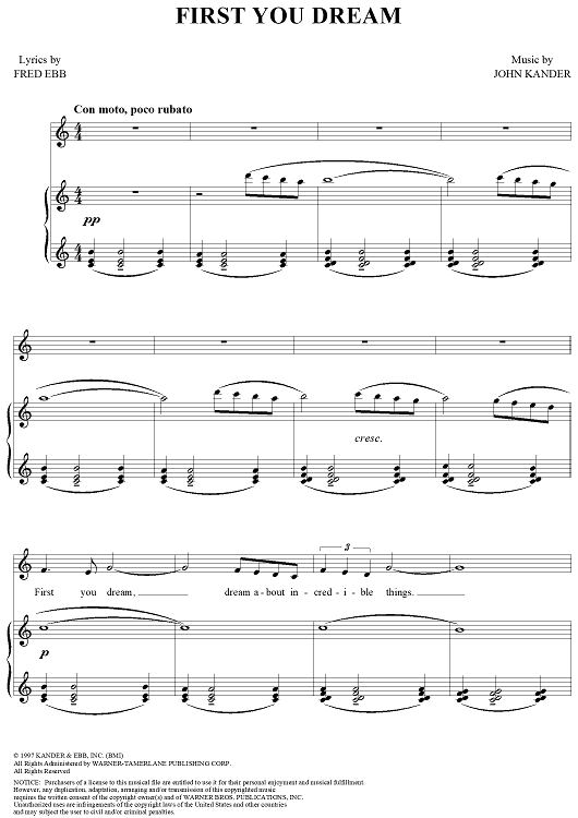 Digital Sheet Music for First You Dream by John Kander, Fred Ebb scored for Piano/Vocal; id:311569