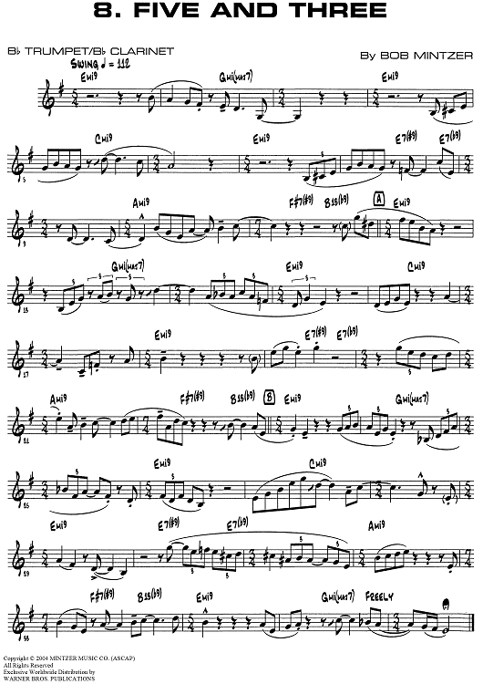 Digital Sheet Music for Five and Three by Bob Mintzer scored for B-flat Trumpet/Clarinet; id:502103