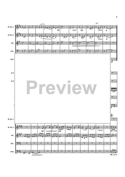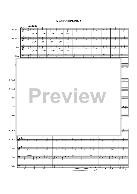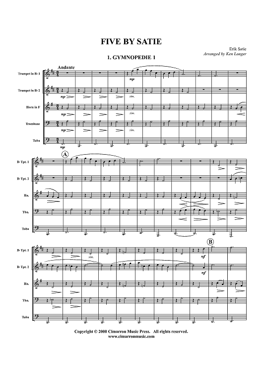 Digital Sheet Music for Five by Satie - Score by , Erik Satie, Ken Langer scored for Brass Quintet; id:417469