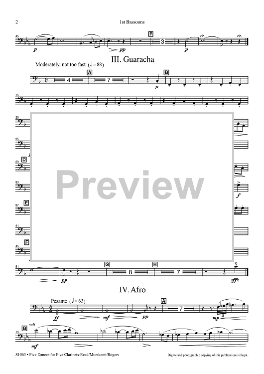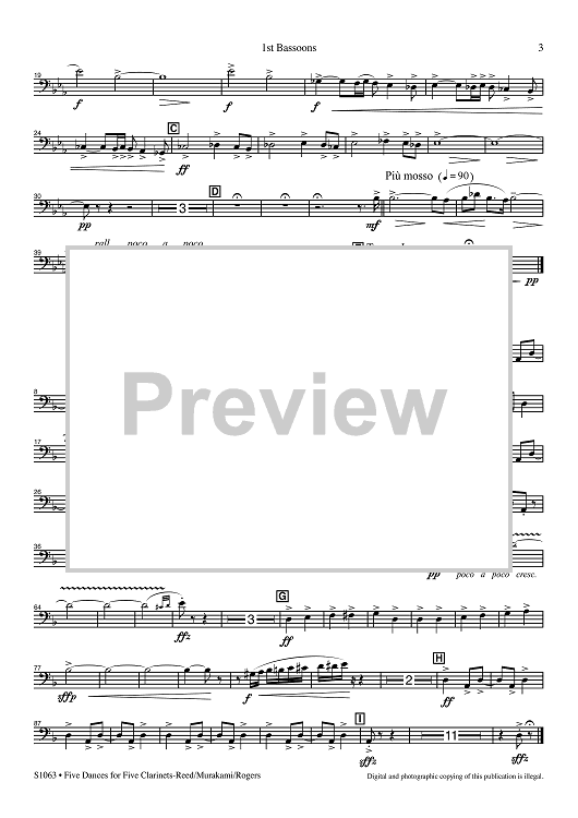 Digital Sheet Music for Five Dances for Five Clarinets - 1st Bassoons by Alfred Reed, R. Mark Rogers, Yasuhiro Murakami scored for Concert Band; id:507224