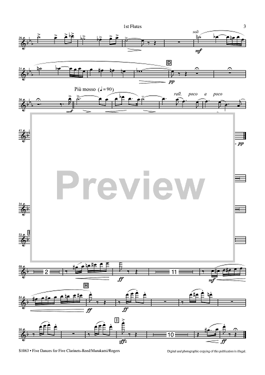 Digital Sheet Music for Five Dances for Five Clarinets - 1st Flutes by Alfred Reed, R. Mark Rogers, Yasuhiro Murakami scored for Concert Band; id:507212