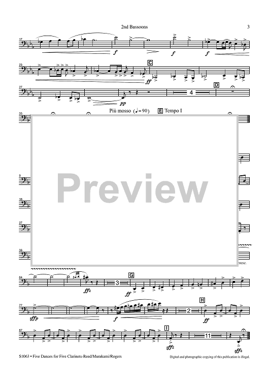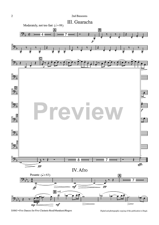 Digital Sheet Music for Five Dances for Five Clarinets - 2nd Bassoons by Alfred Reed, R. Mark Rogers, Yasuhiro Murakami scored for Concert Band; id:507225
