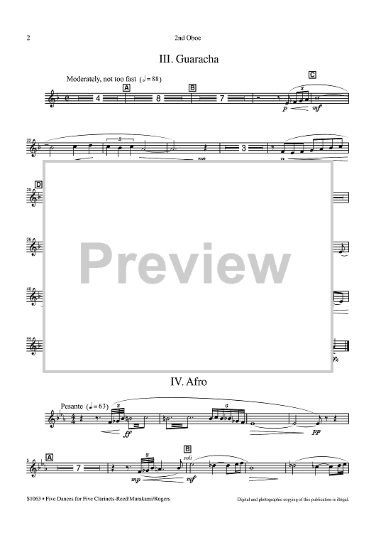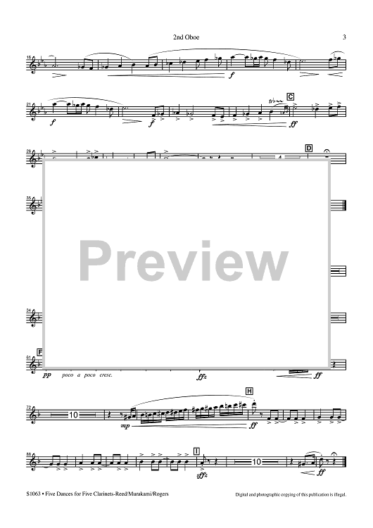 Digital Sheet Music for Five Dances for Five Clarinets - 2nd Oboe by Alfred Reed, R. Mark Rogers, Yasuhiro Murakami scored for Concert Band; id:507215
