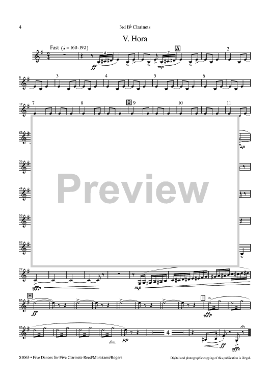 Digital Sheet Music for Five Dances for Five Clarinets - 3rd Bb Clarinets by Alfred Reed, R. Mark Rogers, Yasuhiro Murakami scored for Concert Band; id:507219