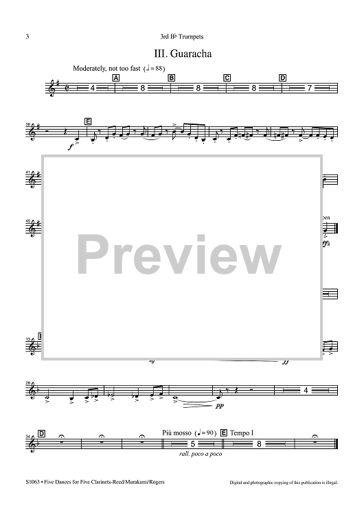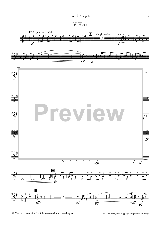 Digital Sheet Music for Five Dances for Five Clarinets - 3rd Bb Trumpets by Alfred Reed, R. Mark Rogers, Yasuhiro Murakami scored for Concert Band; id:507233