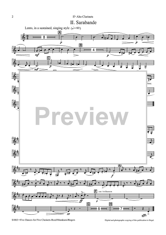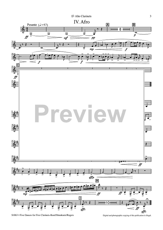 Digital Sheet Music for Five Dances for Five Clarinets - Eb Alto Clarinets by Alfred Reed, R. Mark Rogers, Yasuhiro Murakami scored for Concert Band; id:507220