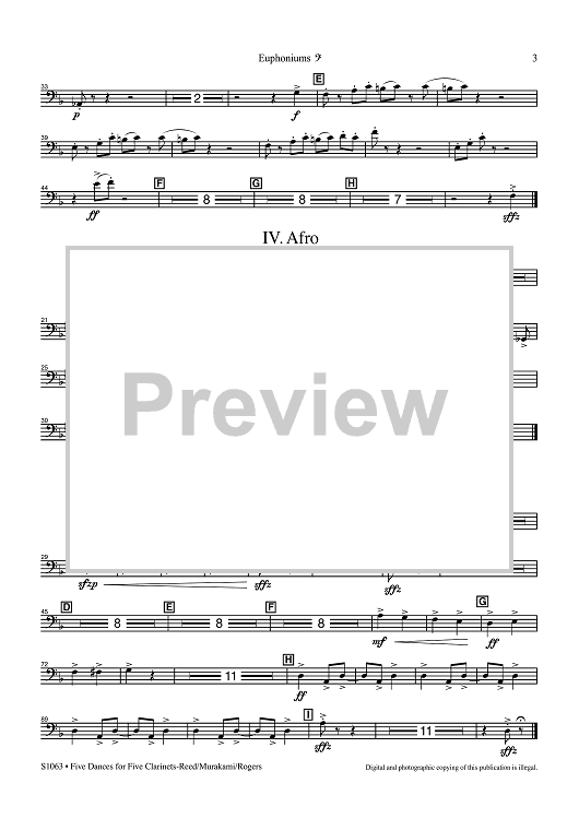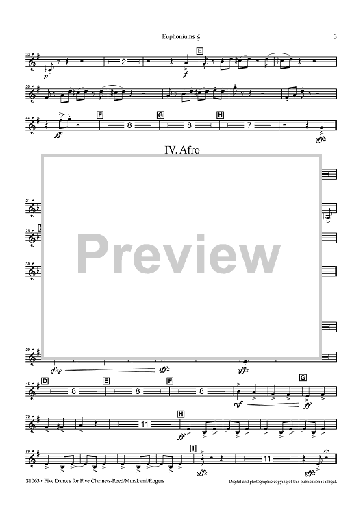 Digital Sheet Music for Five Dances for Five Clarinets - Euphoniums TC/BC by Alfred Reed, R. Mark Rogers, Yasuhiro Murakami scored for Concert Band; id:507241