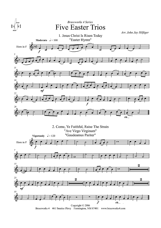 Digital Sheet Music for Five Easter Trios - Horn in F by John Jay Hilfiger scored for Brass Trio; id:320092