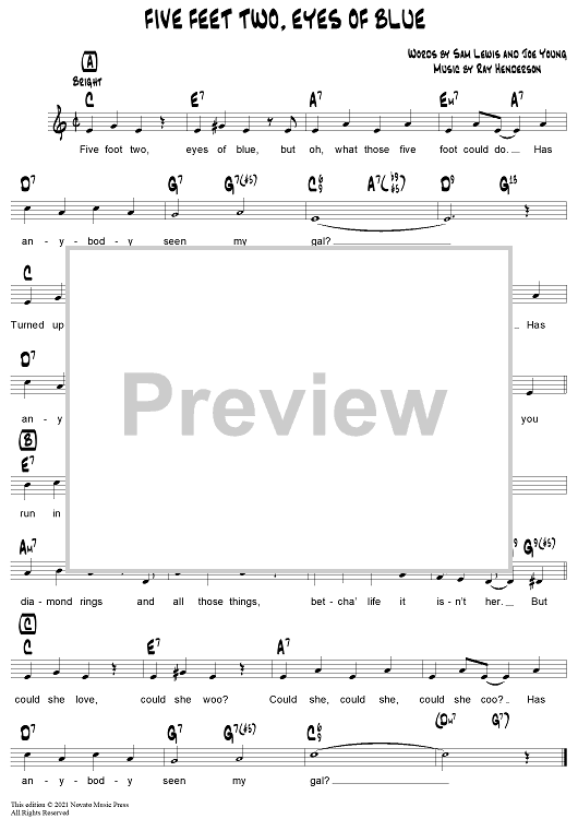 Digital Sheet Music for Five Foot Two, Eyes of Blue by Ray Henderson, Samuel M. Lewis, Joseph Young scored for Lead Sheet; id:307545