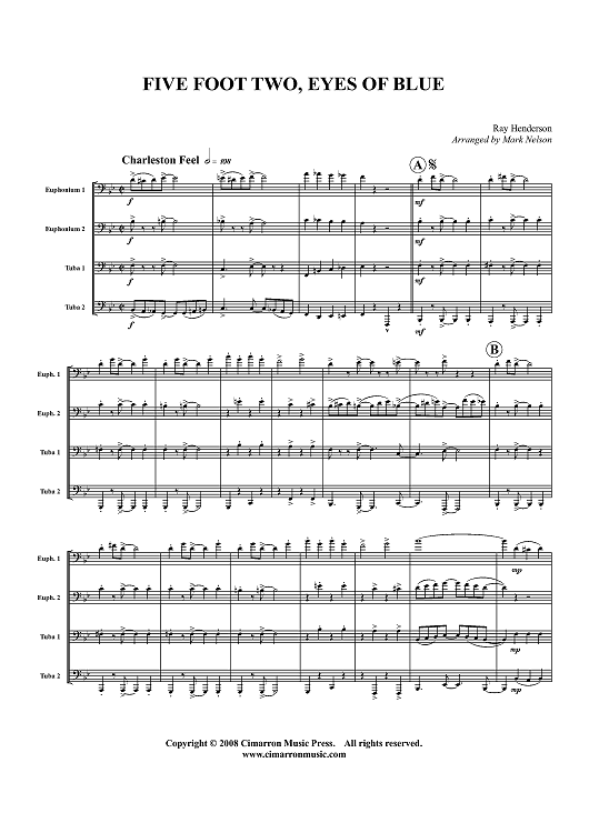 Digital Sheet Music for Five Foot Two, Eyes of Blue - Score by Ray Henderson, Mark Nelson scored for Tuba Quartet; id:416532
