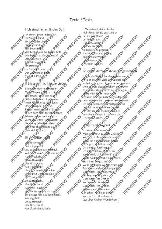 "Five Lieder from 1901 - Score and Parts" Sheet Music by Gustav Mahler