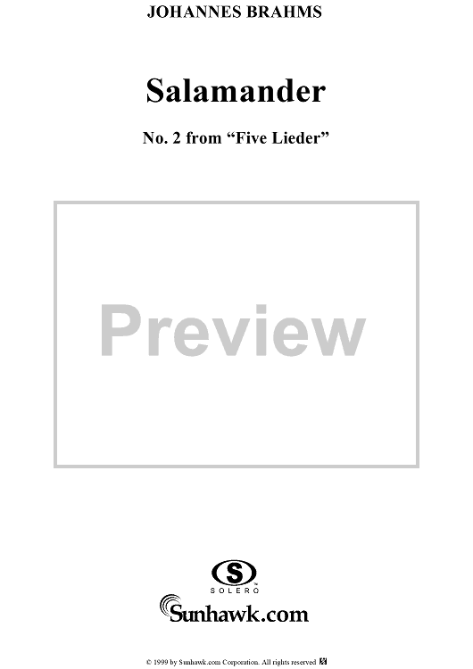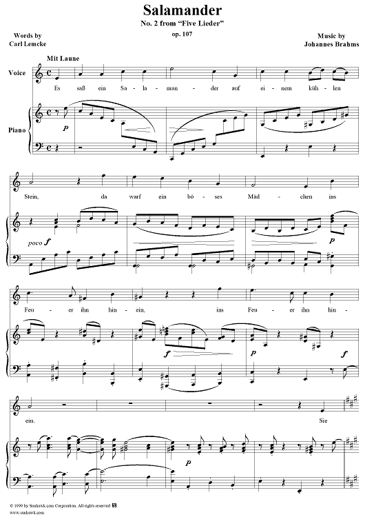 "Five Lieder, Op. 107, No. 2, Salamander" Sheet Music by Johannes Brahms