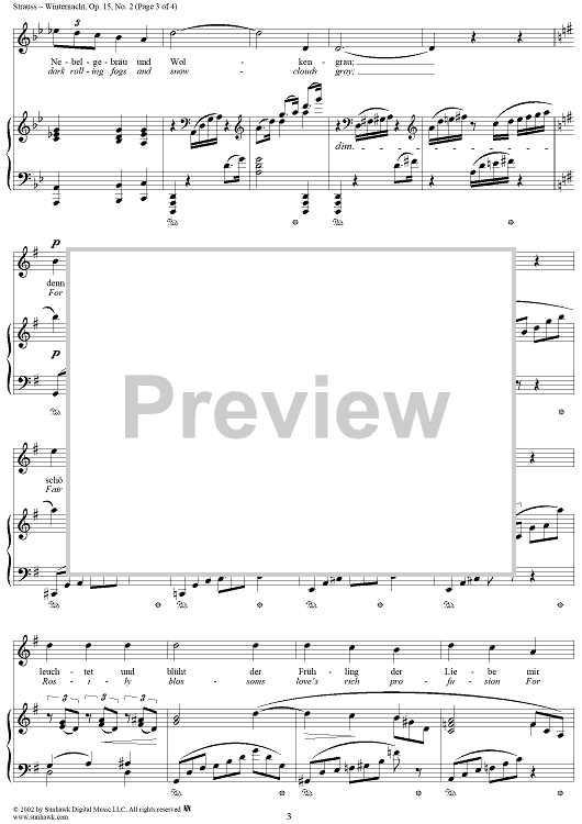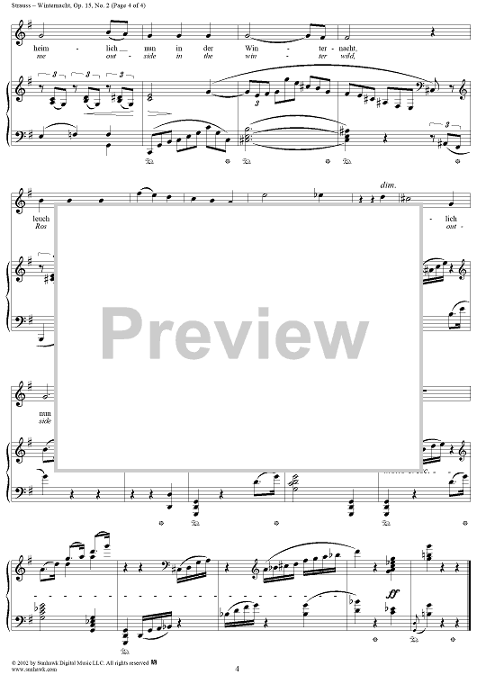 Digital Sheet Music for Five Lieder, Op. 15, No. 2: Winternacht (Winter Night) by Richard Strauss, Adolf Freidrich von Schack scored for Voice/Piano; id:255870