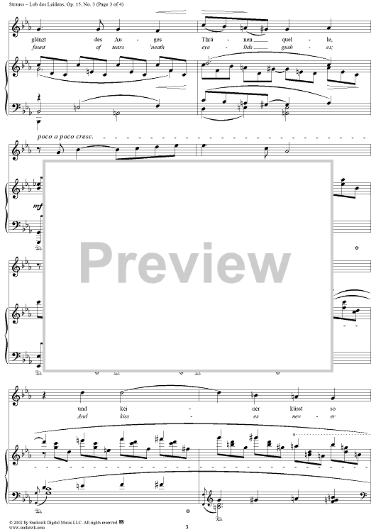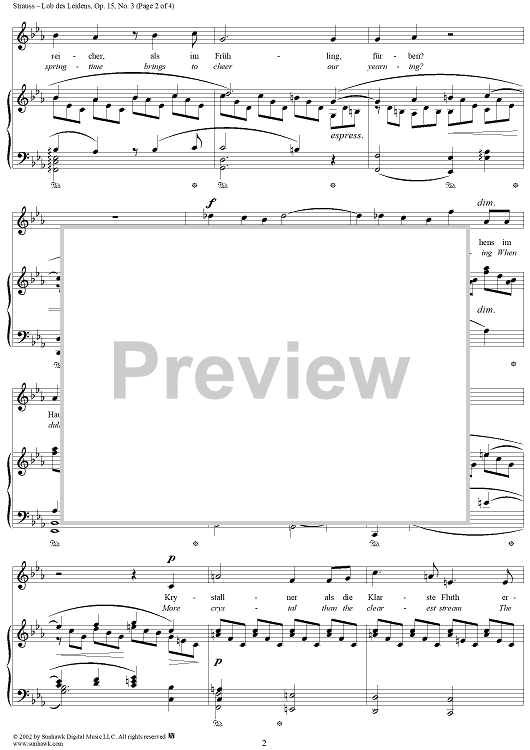 Digital Sheet Music for Five Lieder, Op. 15, No. 3: Lob des Leidens (Elegy of Sorrow) by Richard Strauss, Adolf Freidrich von Schack scored for Voice/Piano; id:255871