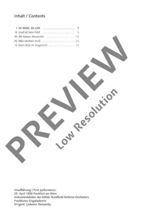 Digital Sheet Music for Five Madrigals - Full Score by Hans Werner Henze scored for Small Mixed Choir (satb) And 11 Solo Instruments; id:474044