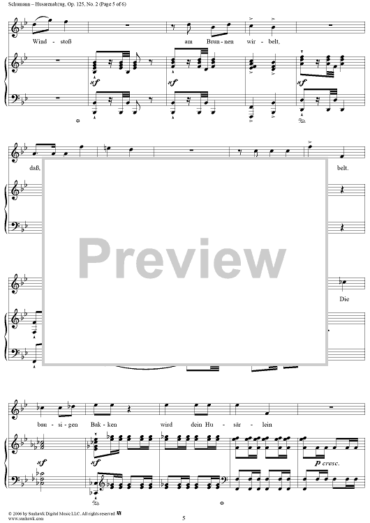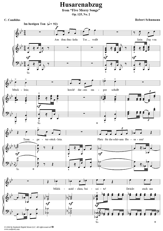 Digital Sheet Music for Five Merry Songs, Op. 125, No. 2: Husarenabzug by Robert Schumann, Karl Candidus scored for Voice/Piano; id:315860