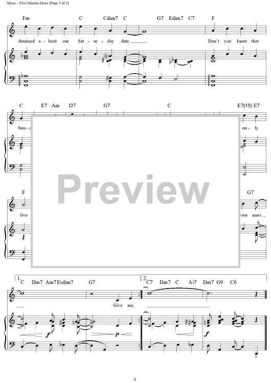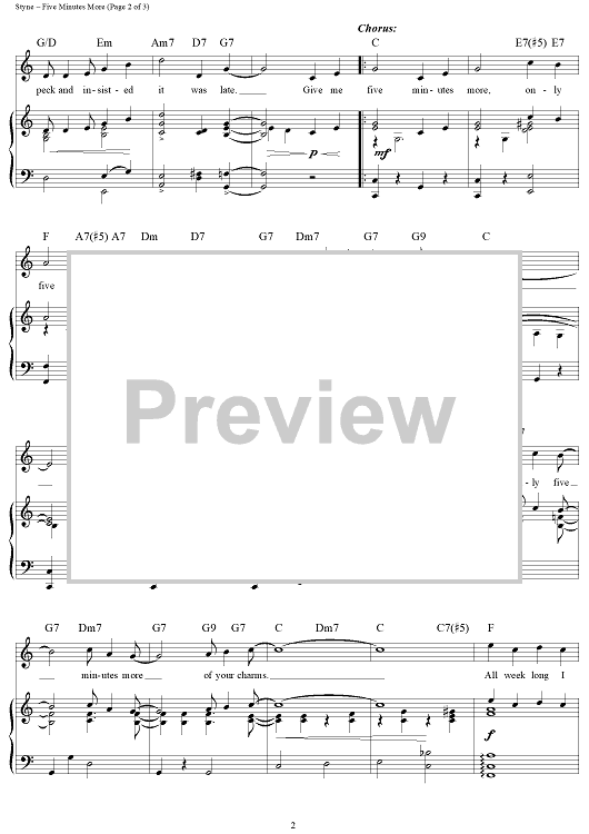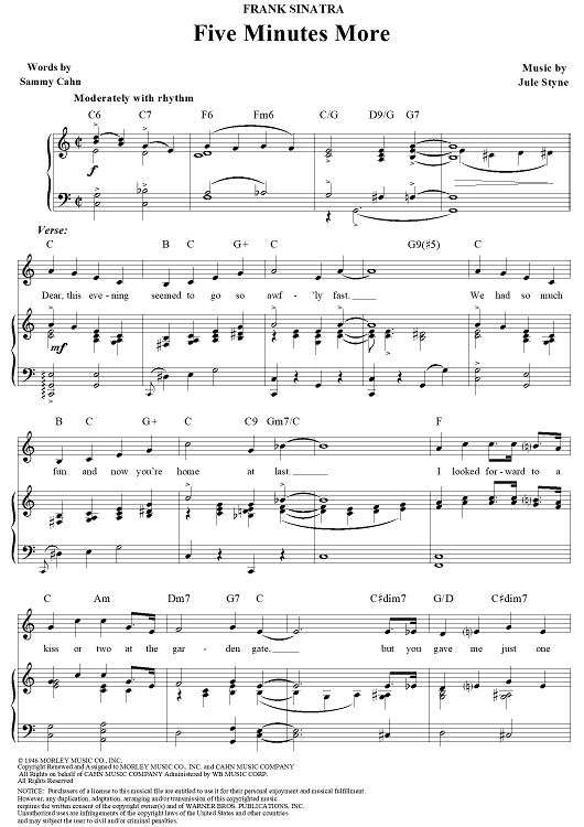 Digital Sheet Music for Five Minutes More by Frank Sinatra, Jule Styne, Sammy Cahn scored for Piano/Vocal/Chords; id:111934