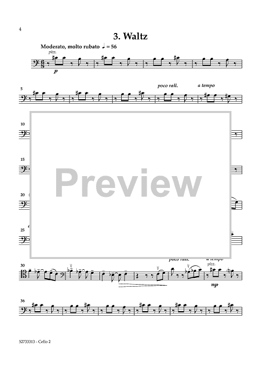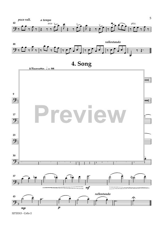 "Five Pieces for Cello Quartet - Cello 2" Sheet Music by Kenton Coe