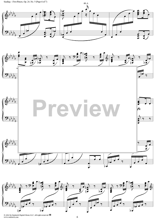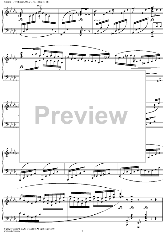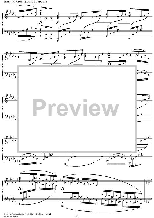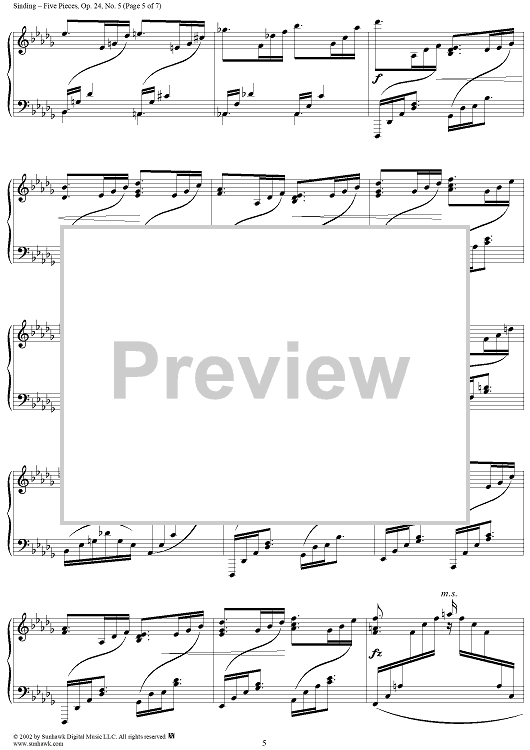 Digital Sheet Music for Five Pieces, Op. 24 Heft II, No.5 by Christian Sinding scored for Piano Solo; id:255884