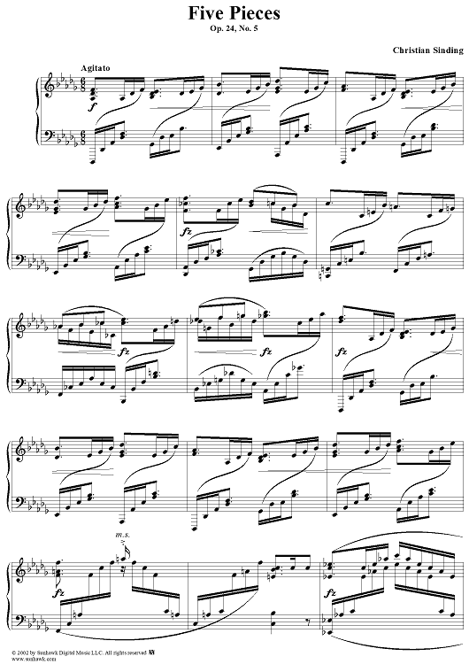 "Five Pieces, Op. 24 Heft II, No.5" Sheet Music by Christian Sinding