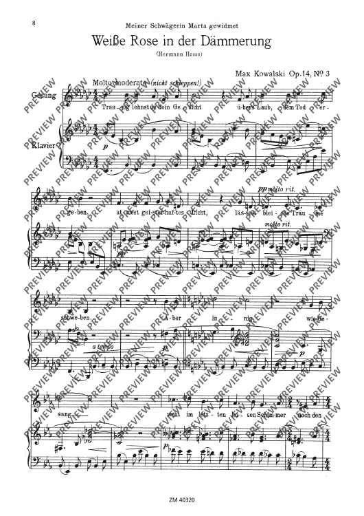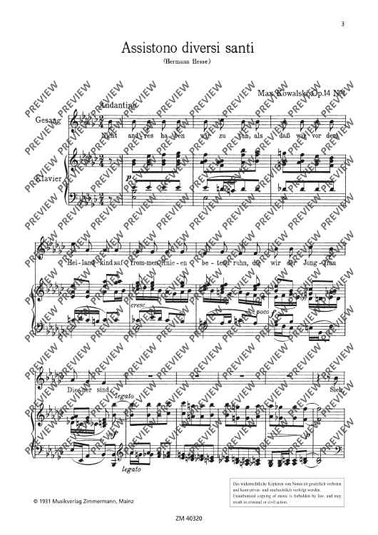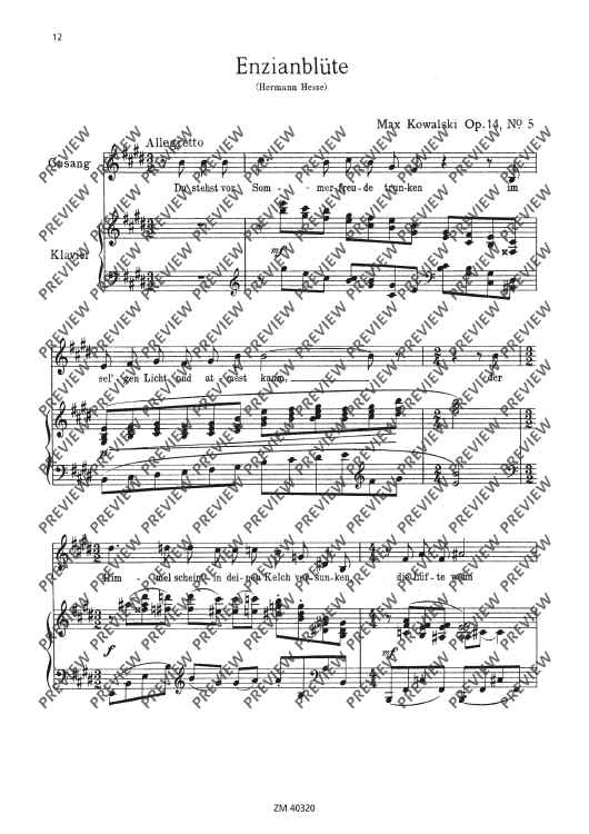 Kowalski's song cycles in the late romantic style received much attention and have been performed by great singers of his time. Hardly a poet was set into music as often as Herman Hesse. The musical version by Kowalski is one of the best of its kind. He made of Hesse's poems art songs, fully of technically beauty.