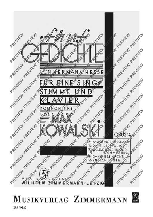 "Five poems by Hermann Hesse" Sheet Music by Max Kowalski