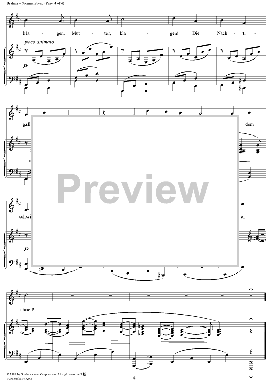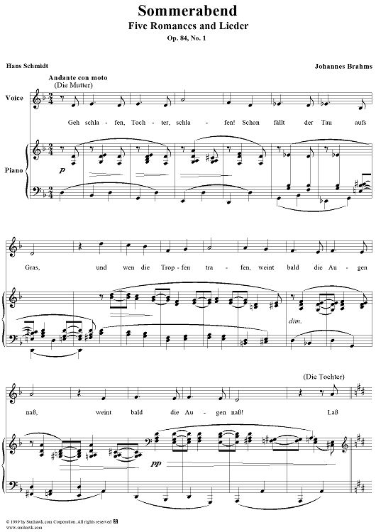 Digital Sheet Music for Five Romances and Lieder, op. 84, no. 1, Sommerabend by Johannes Brahms, Hans Schmidt scored for Voice/Piano; id:274019