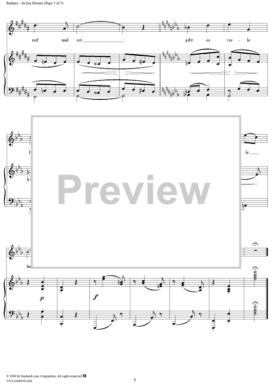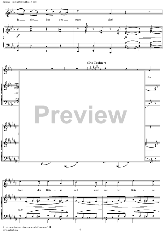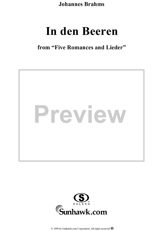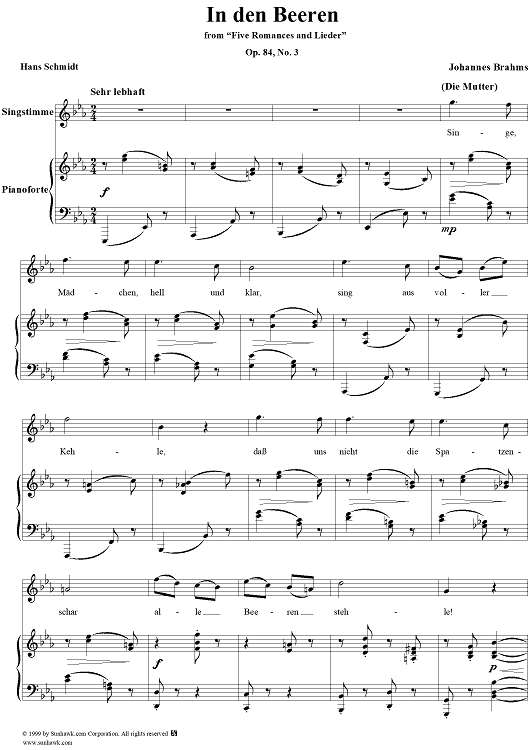 Digital Sheet Music for Five Romances and Lieder, op. 84, no. 3, In den Beeren by Johannes Brahms, Hans Schmidt scored for Voice/Piano; id:274031