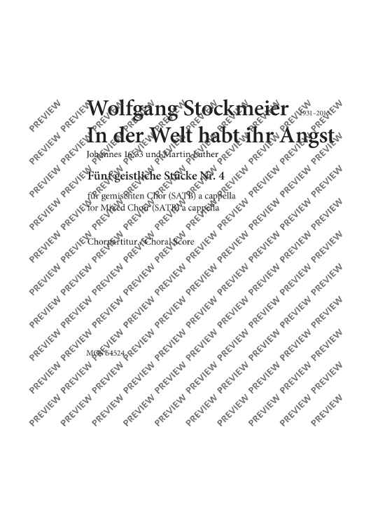 Digital Sheet Music for Five sacred pieces - Choral Score by Wolfgang Stockmeier scored for Mixed Choir (satb); id:497827