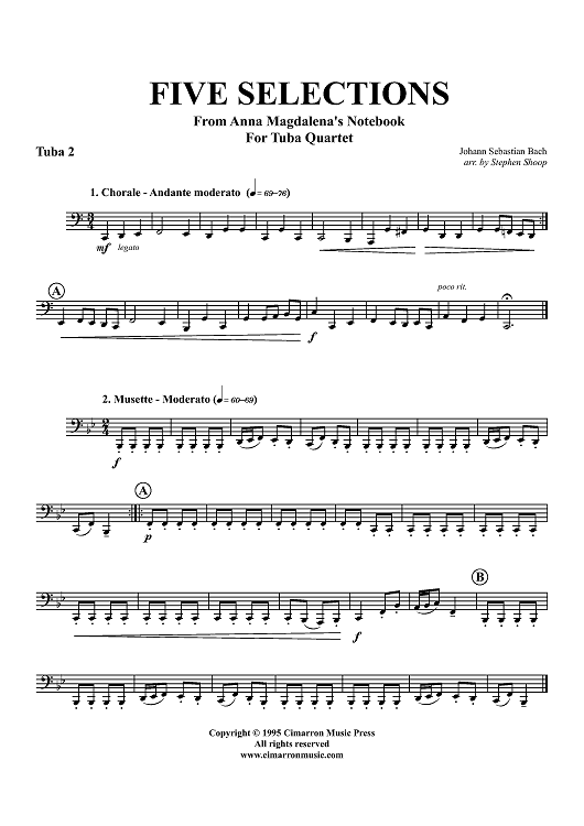 "Five Selections from Anna Magdalena's Notebook - Tuba 2" Sheet Music by Johann Sebastian Bach