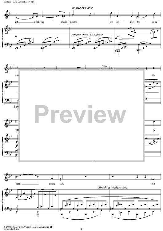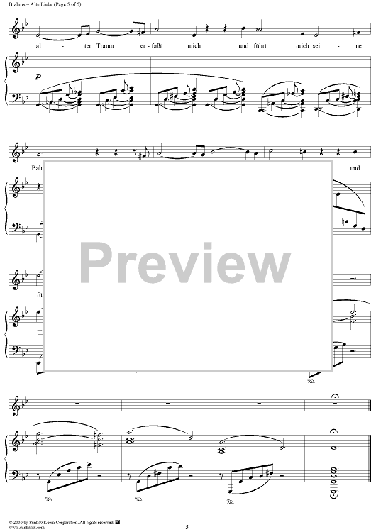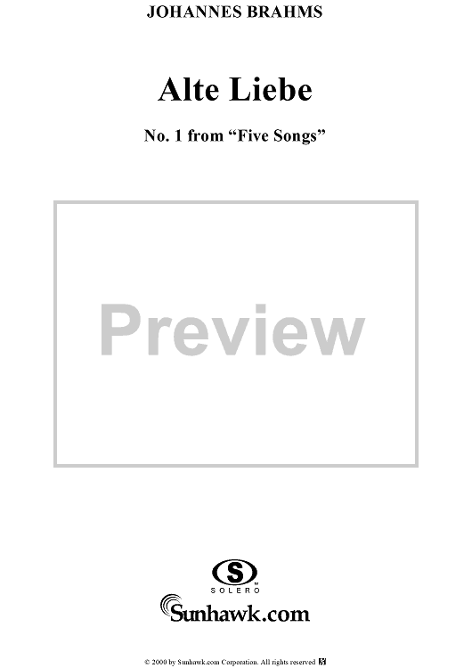 "Five Songs, No. 1: Alte Lieb" Sheet Music by Johannes Brahms