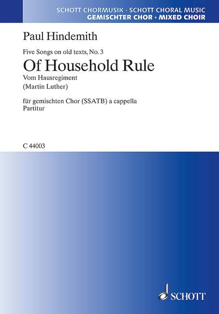 "Five Songs on old texts - Choral Score" Sheet Music by Paul Hindemith