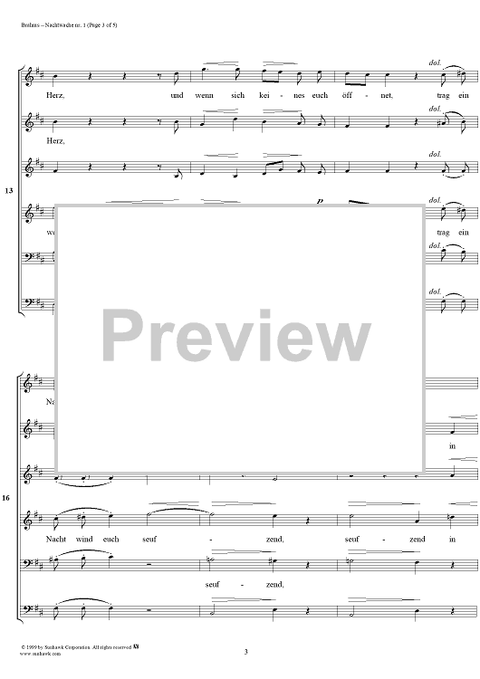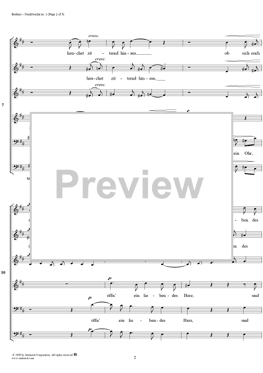Digital Sheet Music for Five Songs, Op. 104, No. 1, Nachtwache Nr. 1 by , Johannes Brahms scored for Four-part Mixed Chorus; id:274185