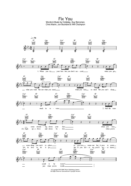 Digital Sheet Music for Fix You by Chris Martin, Coldplay, Jonny Buckland, Guy Berryman scored for Lead Sheet; id:389255