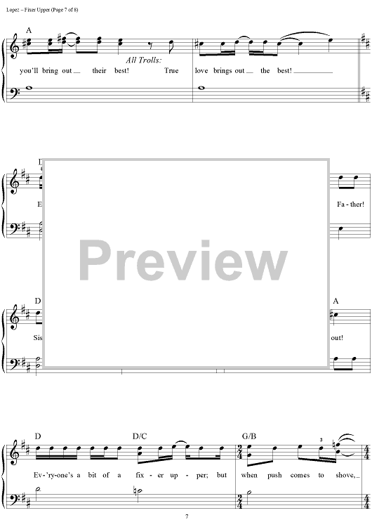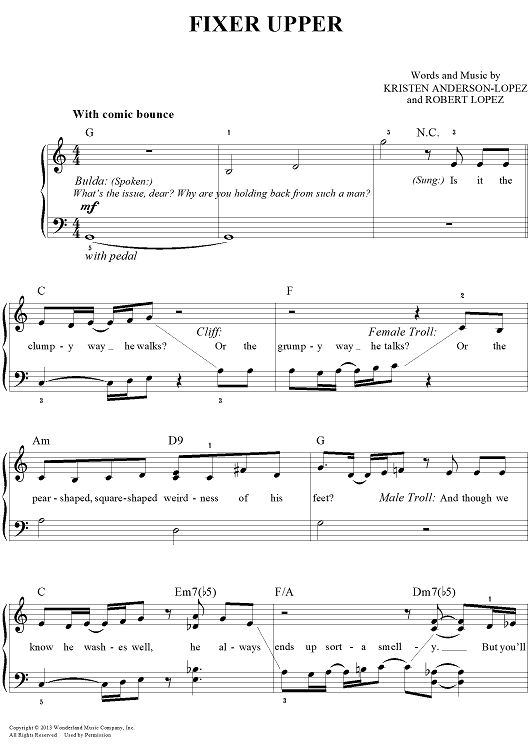 Digital Sheet Music for Fixer Upper by Robert Lopez, Demi Lovato, Kristen Anderson-Lopez scored for Easy Piano/Vocal/Chords; id:448444